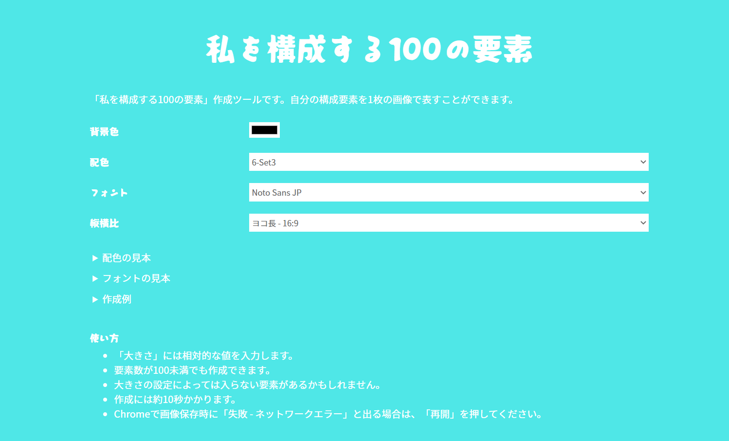 一枚の画像に自分を構成する要素をまとめられるWebアプリケーションです。